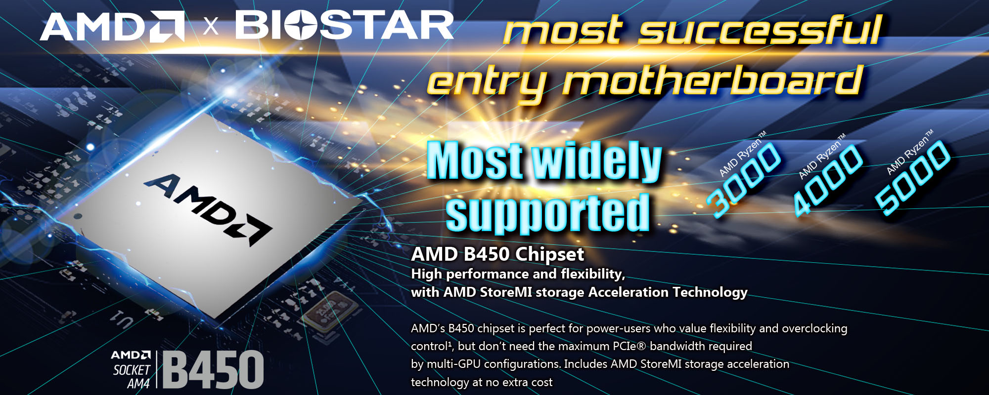 AMD B450 Chipset High performance and flexibility, with AMD StoreMI storage Acceleration Technology