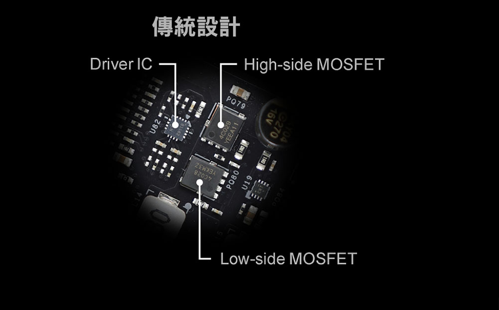 Dr. MOS是由驅動電路(Driver IC)與兩組MOSFET晶體整合而成,能降低開關時的損耗,且能在高開關的頻率下,實現更出色的性能與效率。