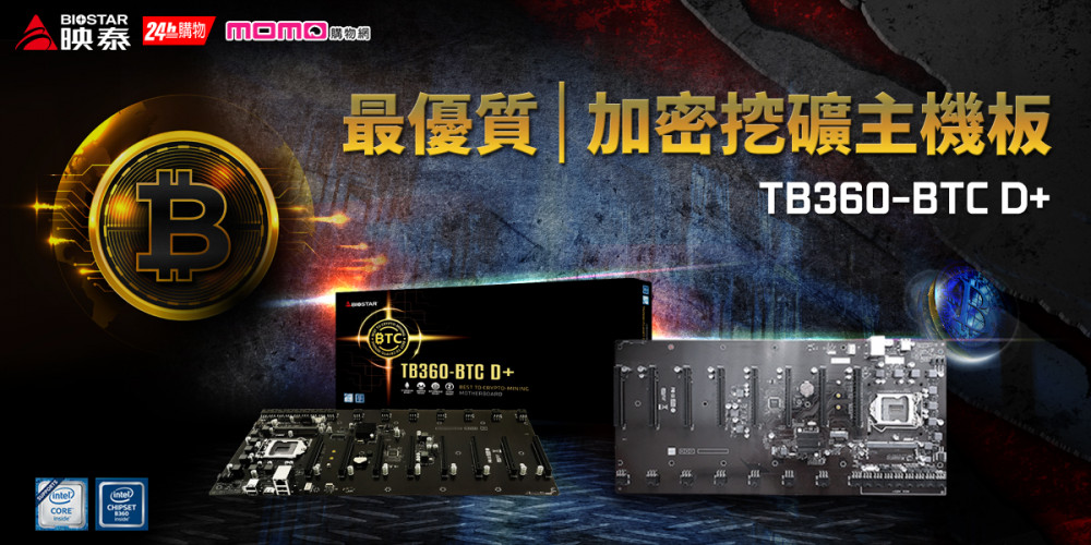 挖礦神器,正式在台開賣 2021年4月14日, 台灣, 台北 -高階主機板、電競與電腦周邊設備國際大廠BIOSTAR映泰,今天正式宣布TB360-BTC D+挖礦主機板即日起在台灣PCHome 24H與momo購物網正式開賣。 近來在比特幣與其他虛擬貨幣的熱潮推動下,越來越多消費者加入挖礦行列。專業電競主機板 ...