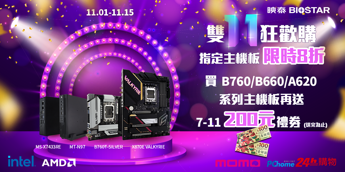 BIOSTAR映泰雙11狂歡 買指定主板享8折