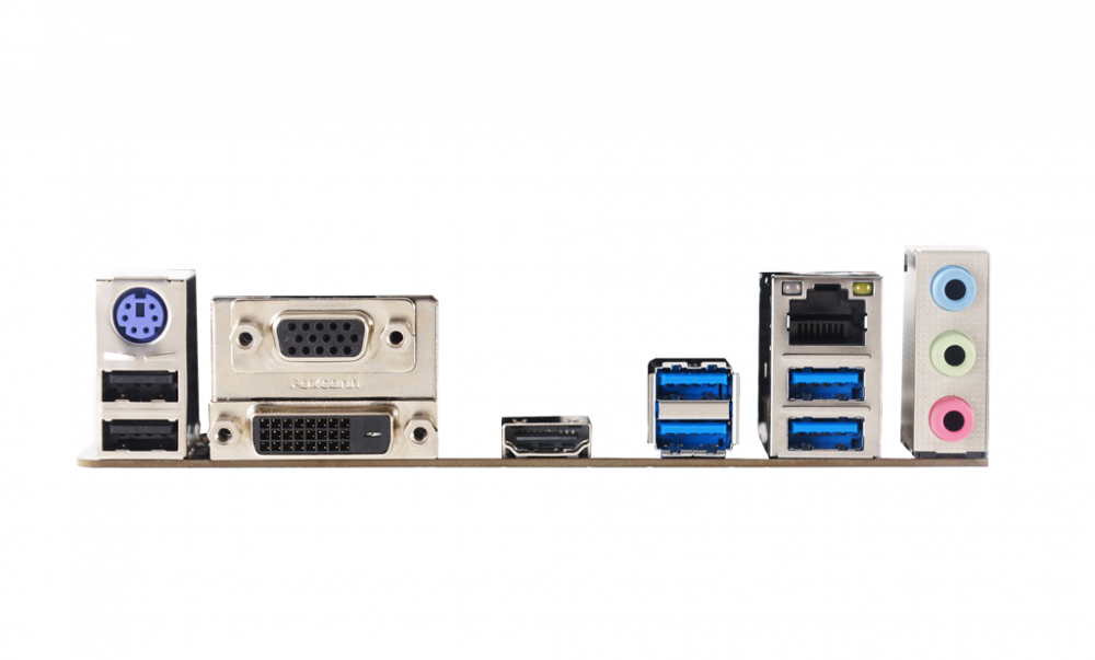 1個PS/2滑鼠/鍵盤連接埠 1個DVI-D連接埠 1個HDMI®連接埠 1個VGA連接埠 1個LAN連接埠 2個USB 2.0連接埠 4個USB 3.2 (Gen1) 連接埠 3個音效連接埠 |