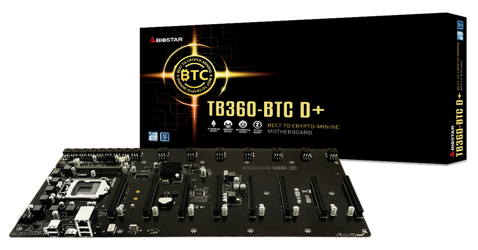 近來在比特幣與其他虛擬貨幣的熱潮推動下,越來越多消費者加入挖礦行列。專業電競主機板品牌BIOSTAR映泰,針對礦工需求所特別推出的TB360-BTC D+挖礦主機板。這款TB360-BTC D+主機板專為加密貨幣挖礦而設計,採用Intel B360晶片組,支援Intel第八、九代核心處理器,同時內建8組由B360晶片提供原生訊號的PCIe x16插槽,每個插槽都有專用渠道,不需額外的PCIe轉接線材,與一般的6根PCIe插槽挖礦主機板相比,TB360-BTC D+支援市面上的Nvidia與AMD顯示卡,可同時輕鬆安裝八張顯示卡,讓礦工擁有更高的算力,加快挖礦速度與效率,絕不落人後。