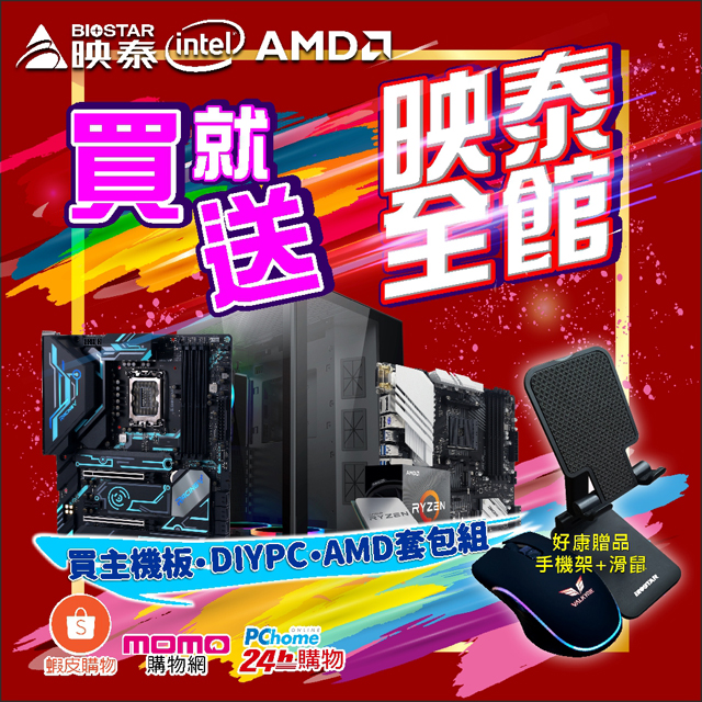 要選購電腦的消費者們,不論是居家辦公,遠端學習和家庭娛樂或電競玩家,BIOSTAR有不同級別的DIYPC電腦能滿足消費者的各種需求。即日起,只要在BIOSTAR三大電商通路PChome24H,momo購物網以及蝦皮映泰官方旗艦館買指定型號Z690/B660/B550 系列主機板(Z690A VALKYRIE/B660GTA/B660GTN/B550M-SILVER/B550T-SILVER/B550MX/E PRO)、AMD (C+M)套包組(指定主板+處理器為5600X/5800X/5900X所搭配之套包組合)、電腦CPU AMD R5-5600X/R7-5800X所搭載之電競機再註冊映泰VIP會員就可獲得抽獎機會,詳細活動資訊,請關注官方活動網頁。