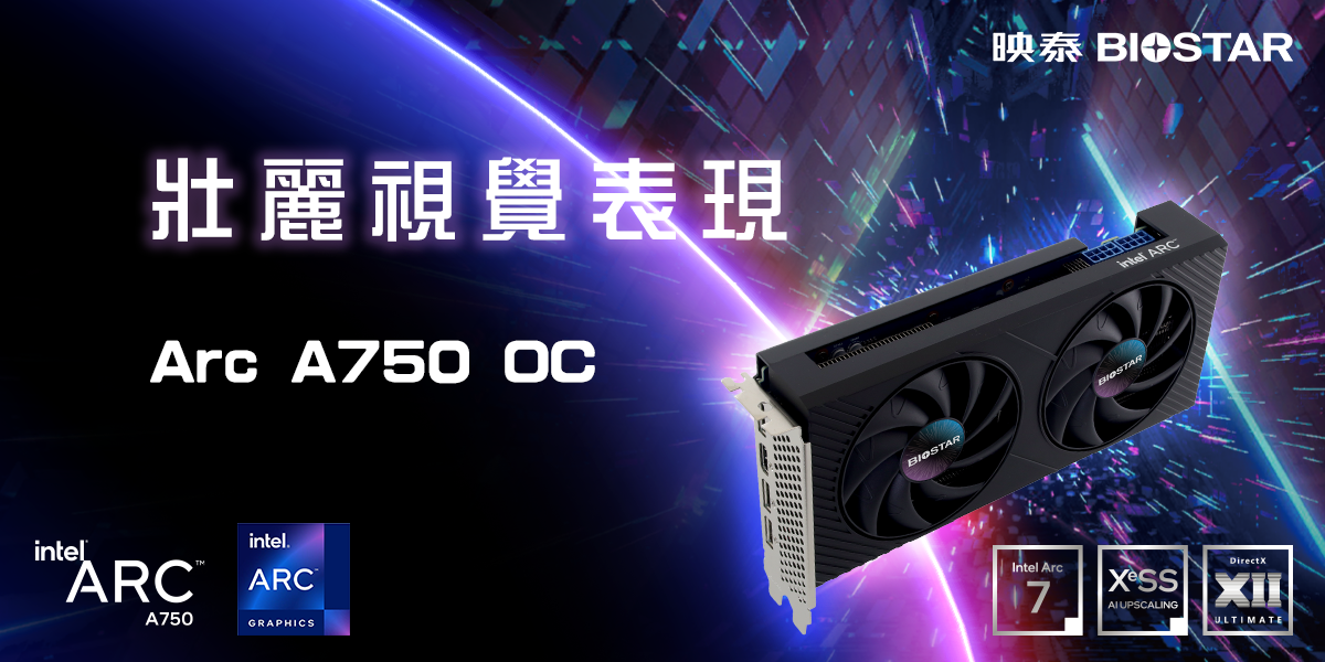 BIOSTAR 映泰的Intel ARC A750 OC 顯示卡無疑提供了遊戲玩家、內容創作者和廣大消費者們物超所值的絕佳選擇!