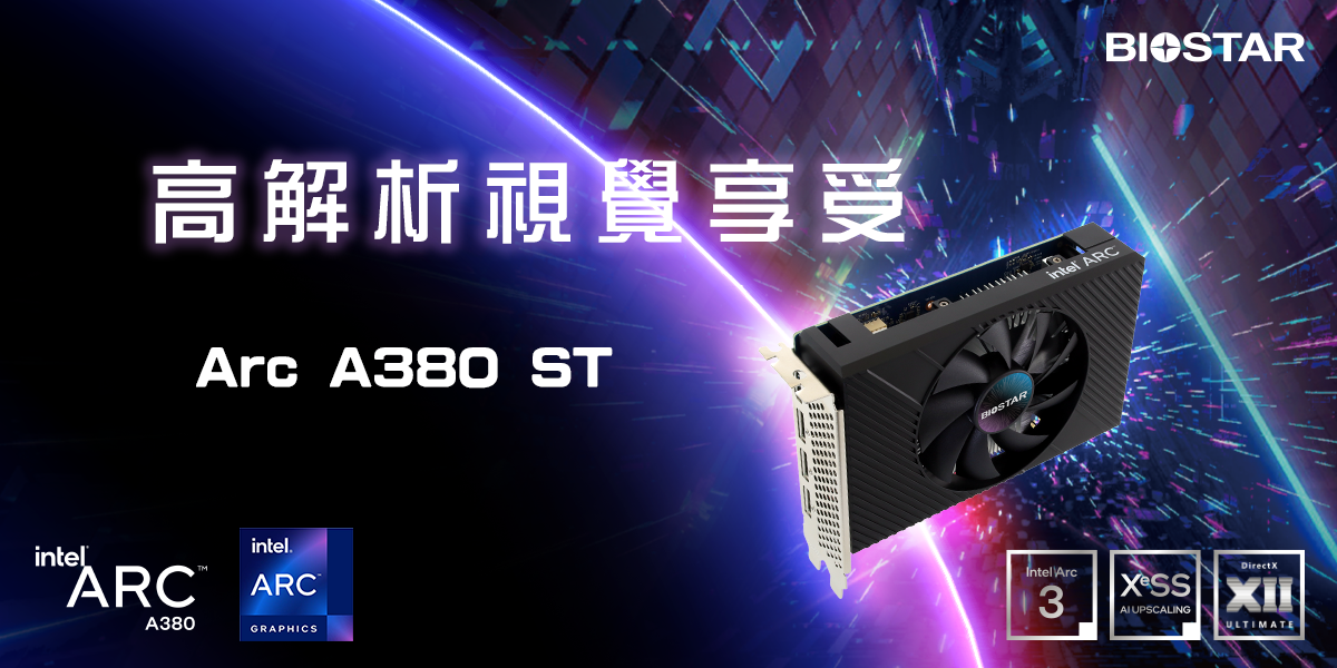 2024年4月19日, 台灣, 台北 - 高階主機板、電競與電腦周邊設備國際大廠BIOSTAR映泰,今日宣布推出全新 Intel ARC A380 ST顯示卡。