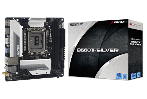 想選購小型主機板的消費者們可參考熱銷B660T-SILVER主機板,提供2個DDR4雙通道記憶體插槽,記憶體最高支持到64GB,最大超頻速度可至5000+(OC) Mhz,同時配備九相供電與BIOSTAR經典的Digital PWM功能,是一款擁有強勁效能的Mini-ITX主機板。另外,B660T-SILVER還配備了最新的PCIe 5.0 規格,搭載 PCIe 5.0x16 插槽能提供更好的訊號傳輸品質讓顯示卡發揮出最強效能。