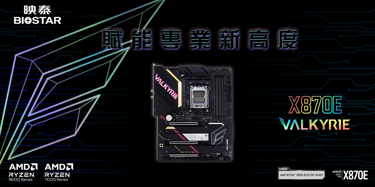 BIOSTAR映泰推出的新旗艦X870E VALKYRIE主機板搭載出色規格與絕佳相容性,釋放無限可能與新世代使用體驗!