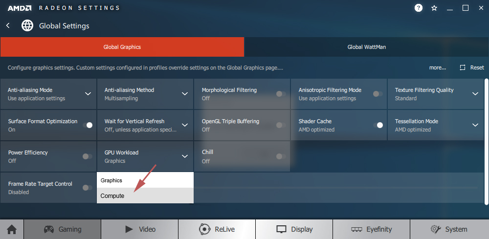 Use following setting to set optimized Blockchain compute performance inside the driver:
