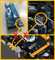 Connect PCI-Ex16 riser cards with graphics cards installed properly to the PCI-Ex1 riser cards installed on motherboard by USB3.0 cables.
