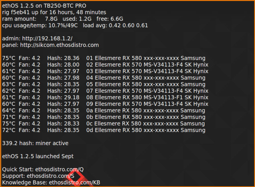 After loading, when you see this image, which means the system enters the ethOS mining system successfully.